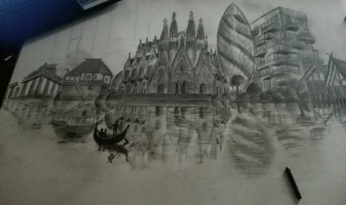 Schon zum siebten Mal gewann der Schüler der Abschlussklasse Fachoberschule Gestaltung der ERS, Christopher Downes, den ersten Platz beim Europäischen Wettbewerb. Dieser kreative Schülerwettbewerb wird seit 1953 jährlich zu aktuellen Themen durchgeführt. Allein aus Deutschland nehmen jedes Jahr ca. 80.000 Schüler/innen daran teil. Umso größer ist die Freude, dass Christopher ein weiteres Mal den Titel nach Hameln holte. Das diesjährige Motto "Denk mal - worauf baut Europa?" nimmt Bezug auf das Europäische Kulturerbejahr, das 2018 in ganz Europa stattfinden wird. Die Jugendlichen waren eingeladen, historische Gebäude und Kulturgüter, alte Handwerksberufe mit Tradition oder bis heute gelebtes Brauchtum zu entdecken und kreativ, z.B. als Bild, Video, Theaterstück oder Musik darzustellen. Christopher fokussiert sich in seinem Schwarz-Weiß-Bild unter anderem auf das 30 St Mary Axe, besser bekannt als „The Gherkin“, in London, die spanische Kathedrale „Sagrada Família“, die Pfahlbauten am Bodensee, ein Familienhaus in Rumänien und die bekannten venezianischen Gondeln im Vordergrund des Werkes.