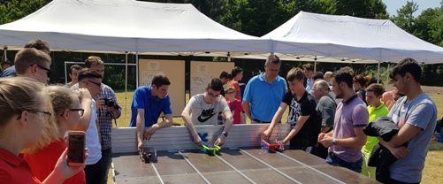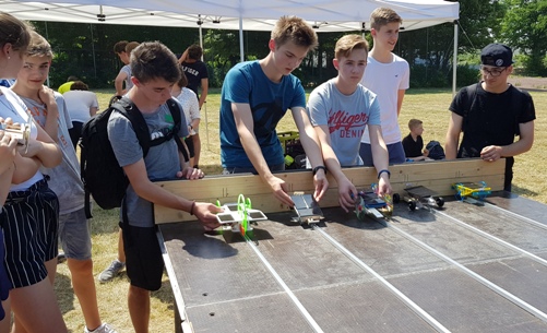 Wie mit Solarzellen selbstgebaute Minigefährte angetrieben werden, zeigten Schülerteams von 20 niedersächsischen Schulen am 29. Mai 2018 beim zweiten „Solar Cup“ in der Robert-Koch-Schule in Hannover-Langenhagen. Im Zentrum der Aufgabe standen technisch-konstruktive und physikalische Aspekte sowie die nachhaltige Nutzung von Energie. An dem Wettbewerb, der von der Stiftung NiedersachsenMetall ausgeschrieben wurde, nahmen auch die Schüler/innen der Profilklassen der Eugen-Reintjes-Schule erfolgreich teil. In diesen Profilklassen befinden sich Jugendliche aus der Theodor-Heuss-Realschule, der Pestalozzischule, der Wilhelm-Raabe-Schule