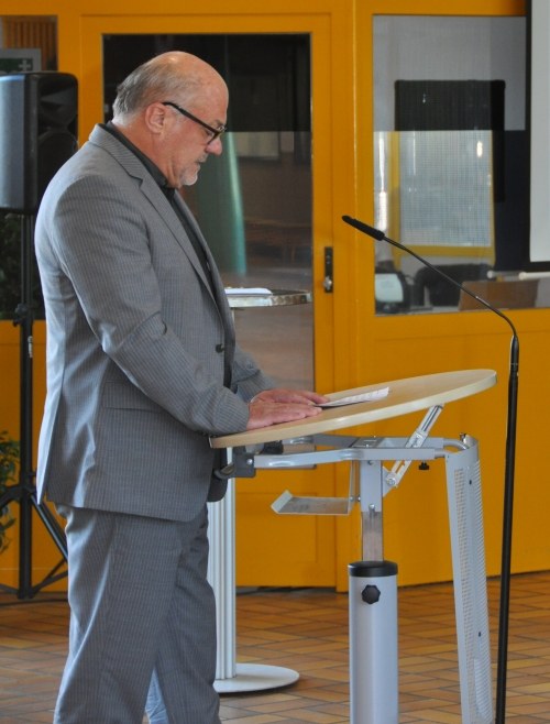 Auch Herr Keller gratulierte den ehemaligen Schüler/innen im Namen des Schulausschusses des Landkreises Hameln-Pyrmont zu ihrem schulischen Erfolg. Wenn auch der zurückliegende Weg zum erreichten Schulabschluss lang und steinig war, so können die diesjährigen Absolventinnen und Absolventen stolz auf ihr Engagement und ihre Ausdauer sein. Ein guter Abschluss ist das Kapital für die Arbeitswelt, Leistung und Kreativität sind der Grundstein in Handwerk und Industrie. Er hofft, dass viele Jugendliche dem Weserbergland treu bleiben, denn die Gesellschaft der Region braucht die ehemaligen Schülerinnen und Schüler, nicht nur beruflich. Mit diesen Worten wünschte Herr Keller ihnen alles Gute für ihre Zukunft.