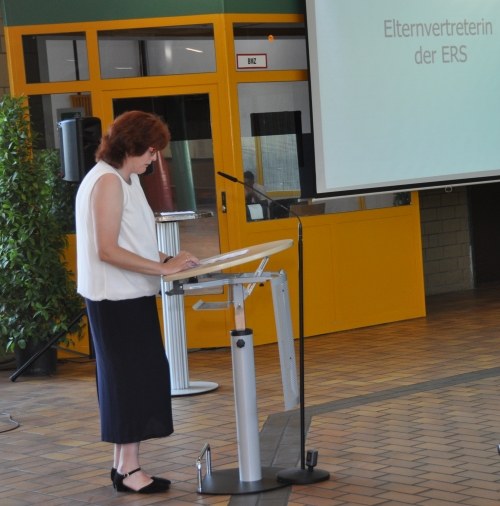 Im Namen der Elternvertretung gratulierte Frau Gromes den Jugendlichen zu ihrem Abschluss, zu einem besonderen Tag, auf den sie stolz sein können. Mit Durchhaltevermögen, Willen und Selbstvertrauen haben sie ihre Ziele erreicht. Nun, so Frau Gromes, haben die ehemaligen Schülerinnen und Schüler mehr Freiheiten, was aber auch bedeutet, mehr allein zu entscheiden. Sie werden Neues erfahren, erleben, lernen. Lebenslanges Lernen erweitert den Horizont, Faulheit, Angst und Langeweile behindern dies. „Nichts hört auf, alles geht weiter. Bleibt zielstrebig, neugierig, mutig und steht auf, wenn ihr stolpert!“ gab Frau Gromes den Absolventinnen und Absolventen mit auf ihren Weg.
