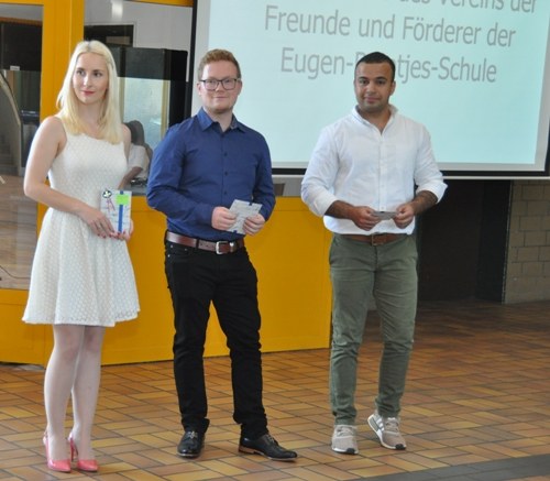 Zum Abschluss der Feierlichkeiten überreichte Frau Gronewold-Peters, 2. Vorsitzende des Fördervereins, den besten Absolventinnen und Absolventen ihres Jahrgangs eine
