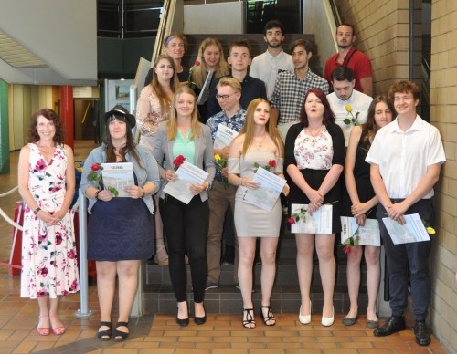 besondere Auszeichnung für ihre herausragende Leistung. Als beste Schülerin und Schüler in diesem Jahr wurden aus der Fachoberschule Gestaltung Jennifer Lamprecht sowie aus der Fachoberschule Technik Jonas Klemme, Jonas Krampe und Ahmad-Samin Shojai geehrt. Abschließend wünschte Frau Gronewold-Peters allen Absolventinnen und Absolventen alles Gute für ihren beruflichen und privaten Werdegang. „Bleibt neugierig und lasst euch begeistern!“