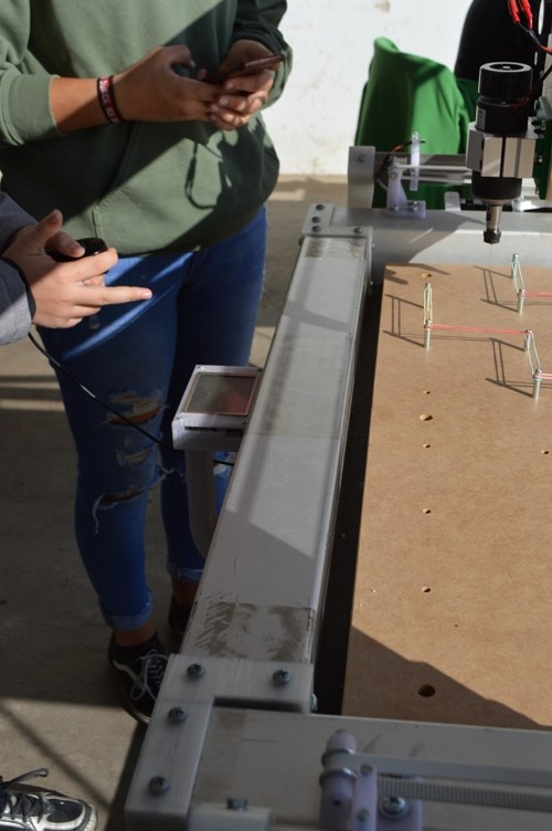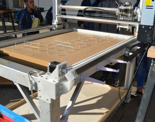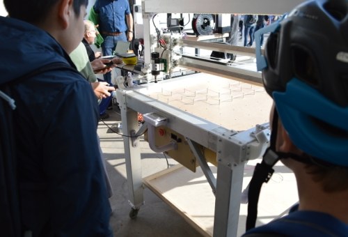 Als Alternative für einen bedeckten Himmel, bei dem die Solarautos nicht fahren können, brachte die ERS mehrere 3D Drucker, die im Betrieb vorgestellt wurden, und eine von Herrn Müller selbst gebaute CNC Portalfräsmaschine mit, an der die Schülerinnen und Schüler ein Labyrinth auf Zeit durchfahren sollten.