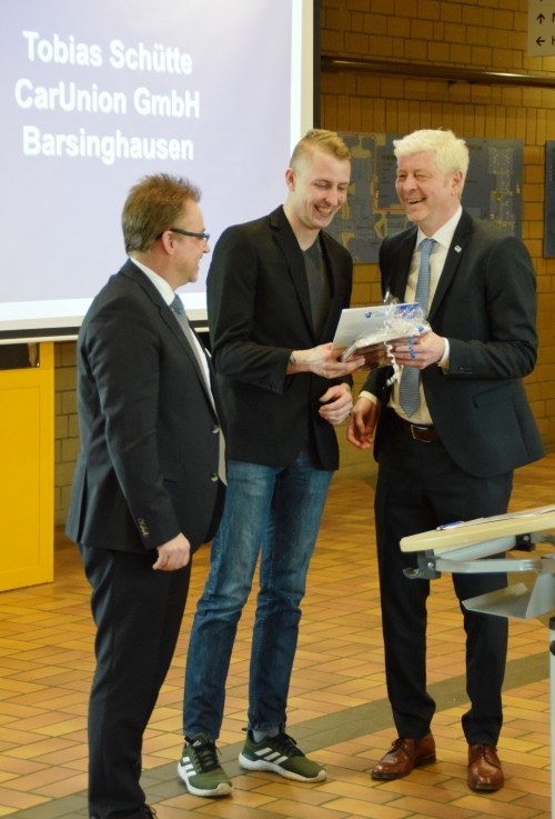 Eine besondere Anerkennung erhält Tobias Schütte, der als Bester seines Jahrgangs die Prüfung absolvierte.