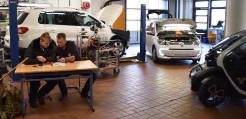 Neben den für Ausbildungszwecken zur Verfügung stehenden Fahrzeugen (Twizy, E-Up sowie verschiedenen älteren PKW-Modellen), steht auch eine LKW zur Verfügung, der in der Ausbildung für System- und Hochvolttechnik und für die Berufskraftfahrer, z. B. für die Ladungssicherung, zur Verfügung steht.
