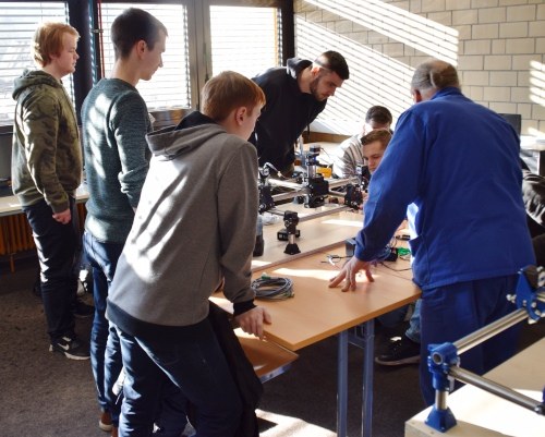 Mit den Kooperationsschülerinnen und -schülern werden u. a. im KFZ-Bereich kleine Fahrzeuge hergestellt, die unterschiedliche Anforderungen erfüllen müssen. Vor dem großen Wettbewerb konnten die Jugendlichen ihre kleinen Jets noch einmal testen.