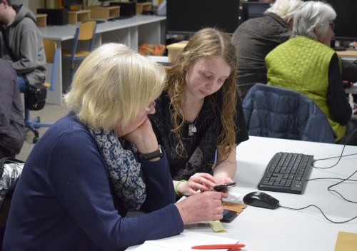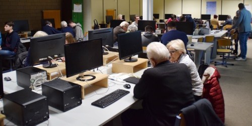 Auch zu diesem Tag der offenen Tür luden die Auszubildenden der zukünftigen Staatlich geprüften informationstechnischen Assistentinnen und Assistenten wieder ältere Menschen ein, die noch besser mit ihrem digitalen Endgerät, wie Tablet, Notebook, Surface oder Handy umgehen möchten. Schon nach kurzer Zeit war die Anzahl der Plätze vergeben.