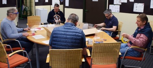 Anschließend wurden in Handarbeit die Folien eingebracht und ein Gummiband eingezogen.