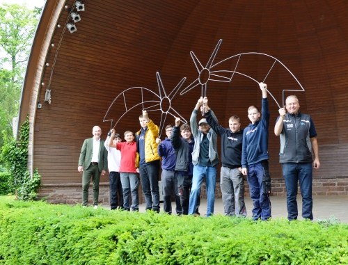 Am Dienstag , dem 05.06.24, konnten die Schüler der Kooperationsklasse KOOP 235 ihr fertiges Projekt an die Stadt Bad Münder übergeben. Im Vorfeld stellte der Bürgermeister der Stadt die Anfrage, ob es möglich sei, Weihnachtssterne für die Innenstadt Bad Münders anzufertigen. Diesem Wunsch konnten die Schüler um Sebastian Gollin im Kooperationsunterricht nachkommen. So wurden 25 große Weihnachsterne nach historischen Vorbild gefertigt und an diesem Freitag an der Kurmuschel in Bad Münder dem Kultur- und Tourimusverein und dem Bürgermeister übergeben.