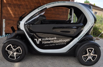 Seit 2012 ist die Eugen-Reintjes-Schule im Besitz des Elektroautos Renault Twizy. Damit passt sie sich der rasanten Weiterentwicklung in der KFZ-Technik an. Aufgrund der vielen technischen Veränderungen, besonders im Hinblick auf neue Antriebsarten, wurden sowohl der Rahmenlehrplan für die schulische Ausbildung als auch die Rahmenrichtlinien für die Ausbildung in den Werkstätten erheblich angepasst, so dass die Eugen-Reintjes-Schule mit Hilfe des Elektroautos moderne Kfz-Mechatroniker/innen optimal ausbilden kann. Der Renault Twizy wurde zudem auf dem Mobilitätstag am Sonntag, dem 8. September 2013, in Hameln, von Lehrerinnen und Lehrern der Eugen-Reintjes-Schule vorgestellt. Mit Hilfe des Elektroautos wurden den Interessenten Elektromobilität und alternative Energien praktisch erläutert.