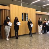 Elisabeth-Selbert-Schule - Berufsbildende SchulenDie vier Anne Frank Botschafter*innen der Elisabeth-Selbert-Schule wurden in der Botschaft der Niederlande in Berlin geehrt.