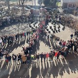 Schiller-Gymnasium Hameln - Allgemeinbildende SchulenAls Zeichen für Zusammenhalt, Frieden und Freiheit haben die Schülerinnen und Schüler des Schiller-Gymnasiums am Montag auf dem Schulhof gemeinsam das Peace-Zeichen gebildet, um ihrer Unterstützung dieser Werte Ausdruck zu verleihen. Sich am Rosenmontag klar für das Leben und die bunte Vielfalt zu positionieren, war ein Anliegen der Schülervertretung, die diese Aktion organisiert hat.