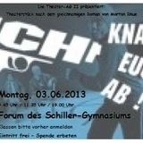 Schiller-Gymnasium Hameln - Allgemeinbildende SchulenViel Fleiß, Phantasie und Engagement haben unsere beiden Theater-AG in den letzten Monaten investiert, um jetzt zwei Stücke aufführen zu können. "Was ist Glück?" fragt die AG der fünften bis siebten Klassen am 27.05. und liefert mit ihrem Episoden-Stück auch die ein oder andere Antwort auf diese Frage. Am 03.06. inszeniert dann die AG des Jahrgangs 8/9 "Ich knall euch ab!", nach dem bekannten Roman von Morton Rhue ("Die Welle").