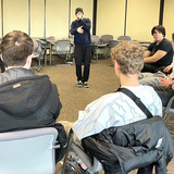 Eugen-Reintjes-Schule - Berufsbildende SchulenPoetry-Slammer Tilman Döring arbeitet mit einer Bautechnikklasse