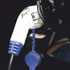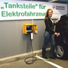Werner Meinberg (GF Meinberg Funkuhren) besitzt eines der ersten E-Automobile in Bad Pyrmont. Die Fotos zeigen Tochter Claudia Meinberg beim „Probetanken“!