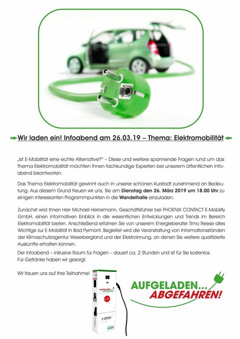 Wir laden ein! Infoabend am 26.03.19 – Thema: Elektromobilität
