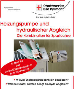 Die Heizungspumpe ist das „Herz“ der Heizung, doch in vielen Haushalten rotieren noch „Oldtimer-Pumpen“. Diese sorgen für hohe Stromkosten und sollten in Verbindung mit einem hydraulischen Abgleich gegen eine Hocheffizienzpumpe ausgetauscht werden. Diesen Austausch fördern wir bei unseren Kunden mit einem Zuschuss in Höhe von 150,00 Euro.