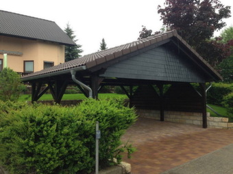 "Doppelcarport mit Schiefergiebel, ohne Mittelsäule als Steildachvariante inkl. Dacharbeiten und Klempnerarbeiten"