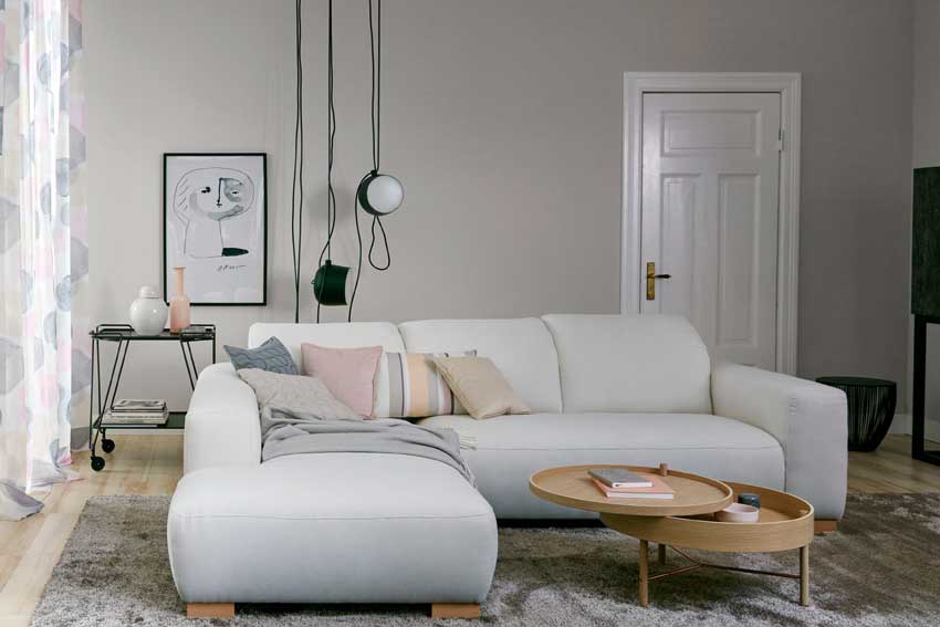 Eine lässige New-York-Stimmung und eine Zurückhaltung, wie man sie vom einstigen Landhauswohnen kennt, vermittelt beispielsweise die Farbe "Moon" aus der aktuellen Trendfarben Limited Collection von Schöner Wohnen-Farbe. Das helle Grau mit warmbeiger Note wirkt elegant und wertig. Buchstäblich das Beste aus zwei Welten geht in diesen frischen Farbton ein: Grau ist emotional ausgeglichen, die Spur Beige steuert zugleich eine besonders warme und natürliche Ausstrahlung bei. Zugleich wirkt die Trendfarbe ausgleichend und lässt sich beliebig mit allen anderen Wohnfarben kombinieren - ähnlich wie der Alleskönner Weiß und vielleicht sogar noch harmonischer, da beim Grau-Beige die Kontraste nicht so stark hervortreten.