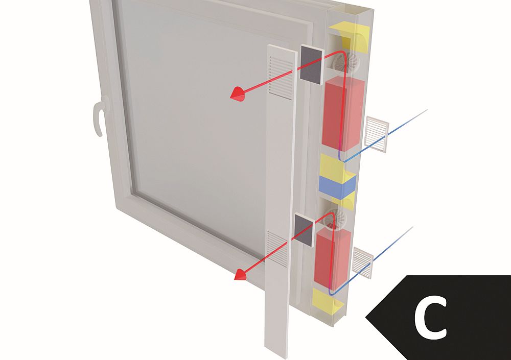 Der neue Weru-AeroTherm Lüfter, für die AFINO-Fenstersysteme, sorgt hier für Abhilfe. Er stellt den notwendigen Luftaustausch nahezu ohne Wärmeverlust sicher, durch Vorerwärmung der einströmenden Luft auf 17 °C bei einer Außentemperatur von – 10 °C und einer Zimmertemperatur von 20 °C. Das entspricht einem Wirkungsgrad von 90 Prozent. Der Weru-AeroTherm Lüfter reduziert zusätzlich die in der Luft befindlichen Schadstoffe - durch Kohleaktivfilter und zusätzlich integrierbare Pollenschutzfilter.