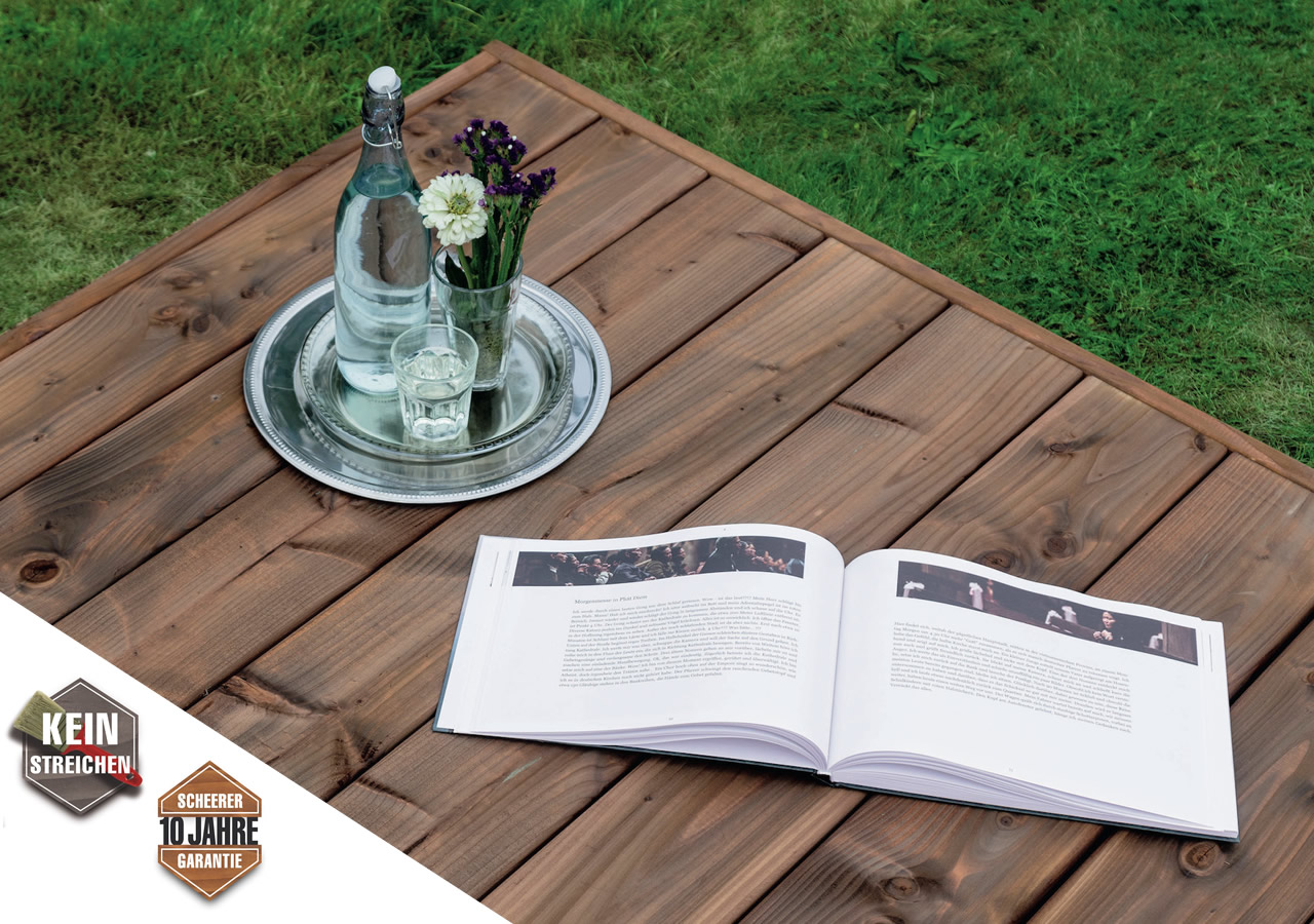 Schön auf Schritt und Tritt: Douglasienholz von SCHEERER erhält durch die Imprägnierung einen warmen Braunton und wird haltbarer.