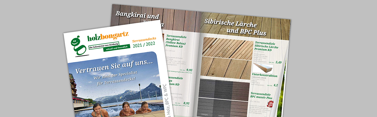 Die Auswahl an Holzarten und Materialien für Terrassendecks wächst stetig. Damit Sie den Überblick behalten, bieten wir Ihnen jetzt unseren neuen Terrassenholzprospekt.