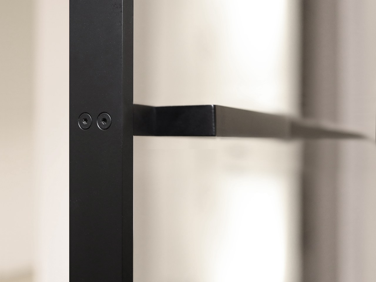 Gleiches Prinzip fand auch bei der Tür selbst Anwendung. So sind alle Verschraubungen und auch die Bänder der Tür filigran gehalten und schließen Bündig mit den Oberflächen ab. Dieser Minimalismus setzt sich auch bei der restlichen Gestaltung fort.