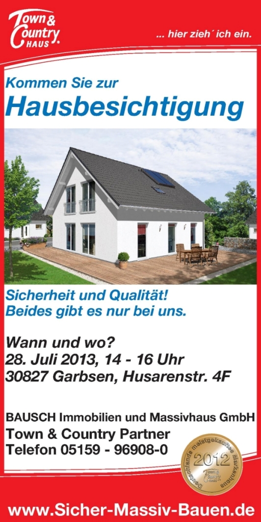 Besuchen sie unser Town & Country Haus "Bodensee 129" am Sonntag den 28.07.2013 zwischen 14.00 bis 16.00 Uhr in Garbsen, Husarenstrasse 4F.