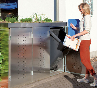 Ein weiterer Vorteil von BINTO Mülltonnenverkleidungen ist ihre Flexibilität. Kunden können jederzeit ein Erweiterungsgestell und die gewünschte Erweiterungsverkleidung hinzufügen oder die alte Verkleidung durch eine neue ersetzen. Außerdem sind auch Klappdeckel erhältlich, um die Mülltonnenverkleidung noch funktionaler und attraktiver zu gestalten.