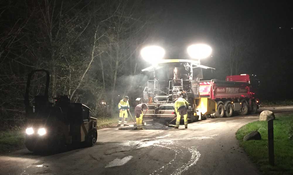 Von Freitag dem 13.11.2015, 16.00 Uhr bis Sonntag den 15.11.2015, 17.00 Uhr haben wir in einer Nachtschicht und einem Tageseinsatz die Zufahrtsstraße zum Kieswerk AHE in Rinteln partiell instand gesetzt.