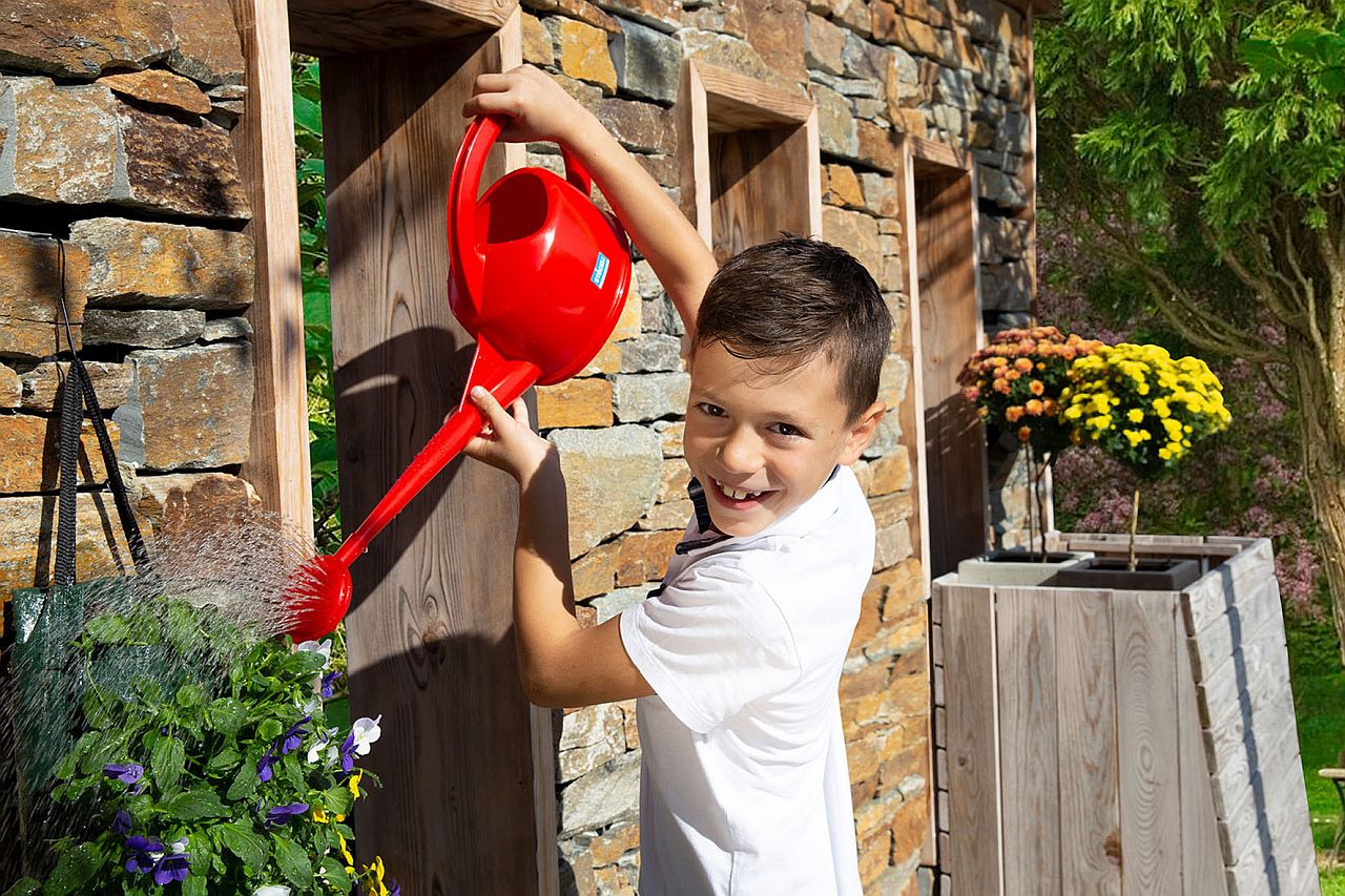 Sie haben Pflanzen im großen Kübel gepflanzt, dazu noch an einem sonnigen Standort? Diese können extra viel Wasser gebrauchen, denn im Topf wird die Flüssigkeit - je nach Erdsorte - nicht besonders lange gespeichert und die Erde im Topf trocknet schneller aus als tiefes Erdreich. Hier dürfen Sie also gern mit der großen Gießkanne, zum Beispiel einem zwölf-Liter-Modell von Stöckli, Wasser verteilen. Auch Fruchtpflanzen wie Tomaten haben einen hohen Wasserbedarf, und zwar besonders in der Zeit, in der sie Knospen oder Früchte bilden. Gerade bei Tomaten und auch bei Rosen wichtig: Gießen Sie immer nur direkt an der Basis, nicht über die Blätter. Zum einen geht dann weniger Nass über die Verdunstung verloren, zum anderen beugen Sie so Pilzerkrankungen vor.