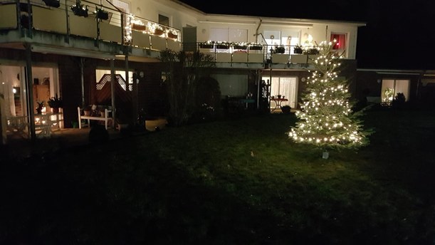 Kurze Verständigungsprobe und dann ab in die Gärten. Das haute uns um: im Garten, auf der Terrasse, den Balkonen und an den Fenstern hatten sich viele Zuhörer eingefunden und nahmen schon mal ein kleines Sonnenbad. Fleißige Mitarbeiterinnen hatten dafür gesorgt, dass möglichst viele unserem Gesang lauschen konnten.