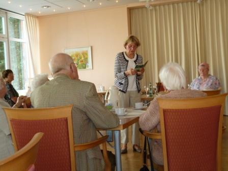 Zwei Bewohnerinnen präsentierten zum monatlichen Clubtreffen eine bunte Auswahl an Gedichten, Versen und Geschichten. Die Werke verschiedener Schriftsteller und Dichter, wie z.B. von Rainer Maria Rilke, Joachim Ringelnatz und Hermann Hesse wurden vorgetragen.