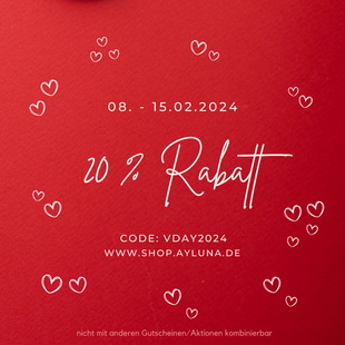 Besuch einfach unseren Online-Shop und trage den Rabattcode VDAY2024 im Warenkorb ein.