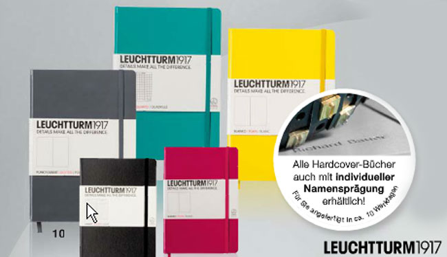 Wir bringen Farbe in den Alltag. Mit den Notizbüchern von Leuchtturm, die es vielen neuen Farben gibt - auch mit individueller Namensprägung.