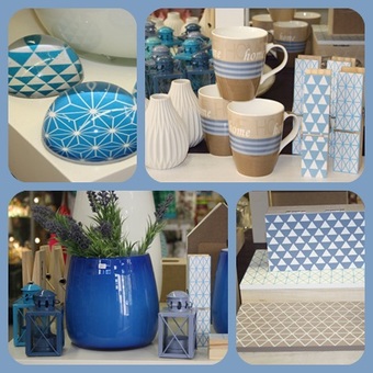 Blau-, Grau- und Türkistöne bestimmen die Grundfarben bei diesen schönen und nützlichen Vasen, Tassen, Bilderrahmen, Windlichtern ...