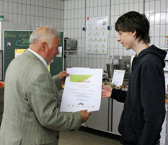 Ein besonderes Lob erhielt dabei Beate Diers, Fachlehrerin der Kooperations-Klasse an der Elisabeth-Selbert-Schule, für ihr Engagement und die Initiative zum Roggenprojekt im Unterricht. Obermeister Thomas Wegener zeigte sich in seiner Rede beeindruckt von den vielfältigen Rezeptideen und der Begeisterungsfähigkeit der Wettbewerbsteilnehmer. Seitens der Jury wurde der pädagogische Wert des Projekts für die Klasse hervorgehoben. Ausgezeichnet wurden: Anastasija Kolesnikov, Freia Drespe, Neil Götz, Christian Greve, Edgar Bock, Sergen Küsin, Sven Lojewski, Marcus Rauch, Jonas Stange, Benjamin Lange.
