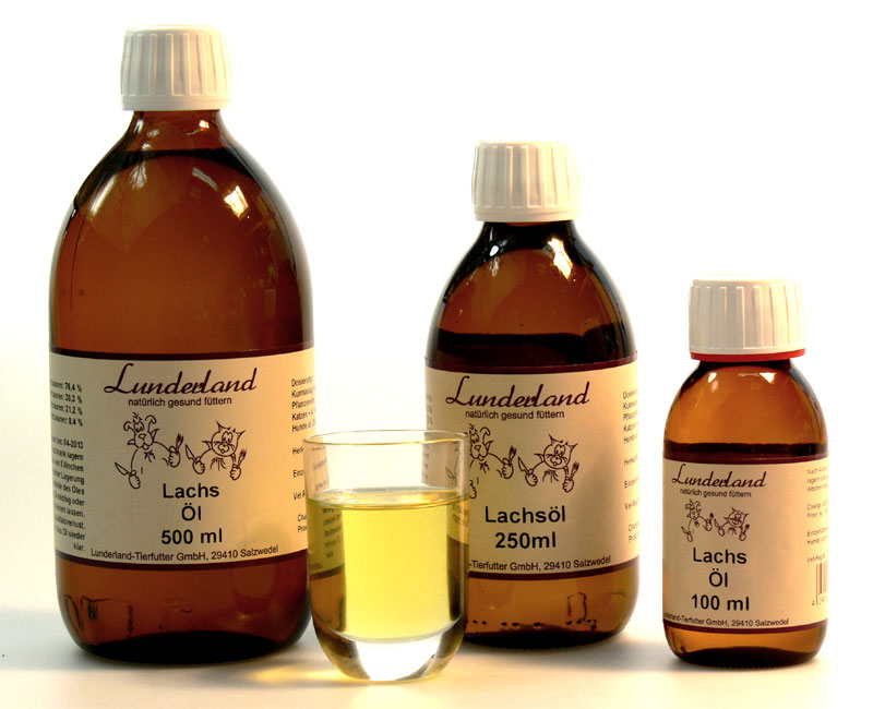 Da sich Lachsöl durch einen besonders hohen Gehalt an Omega-3-Fettsäuren, bietet das Füttern von Lachsöl die Möglichkeit, auf natürlichem Wege den Tagesbedarf an diesen essentiellen Fettsäuren zu decken.