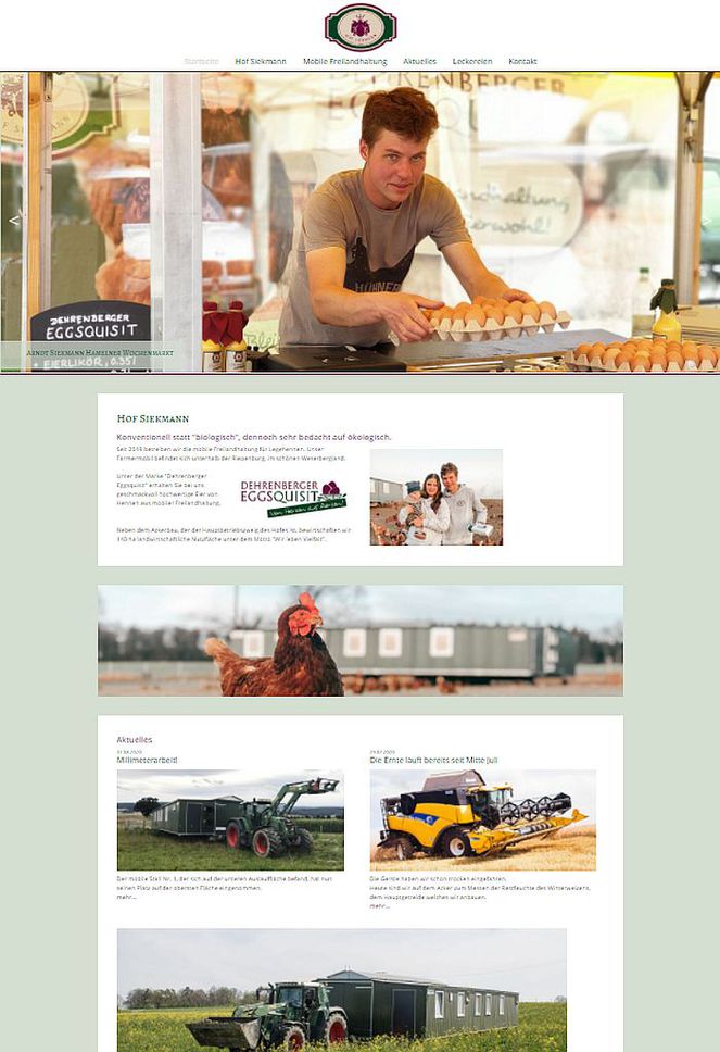 Unter dem Motto "Konventionell statt "biologisch", dennoch sehr bedacht auf ökologisch" betreibt der Hof Siekmann seit 2019 die mobile Freilandhaltung für Legehennen. Das Farmermobil befindet sich unterhalb der Riepenburg, im schönen Weserbergland.