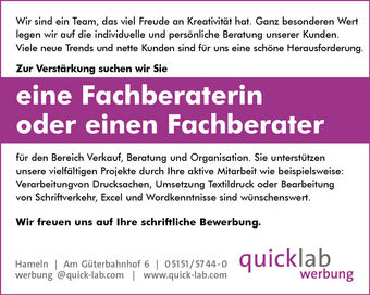 Wir freuen uns auf Ihre schriftliche Bewerbung.