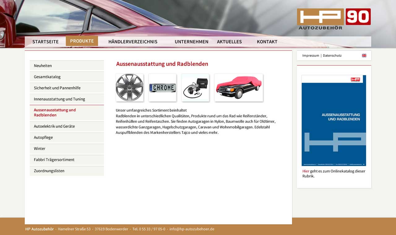 Die Unternehmenspräsentation von HP-Autozubehör wurde innerhalb kürzester Zeit auf responsive Design umgestellt und die Inhalte der "alten" Präsentation übertragen.