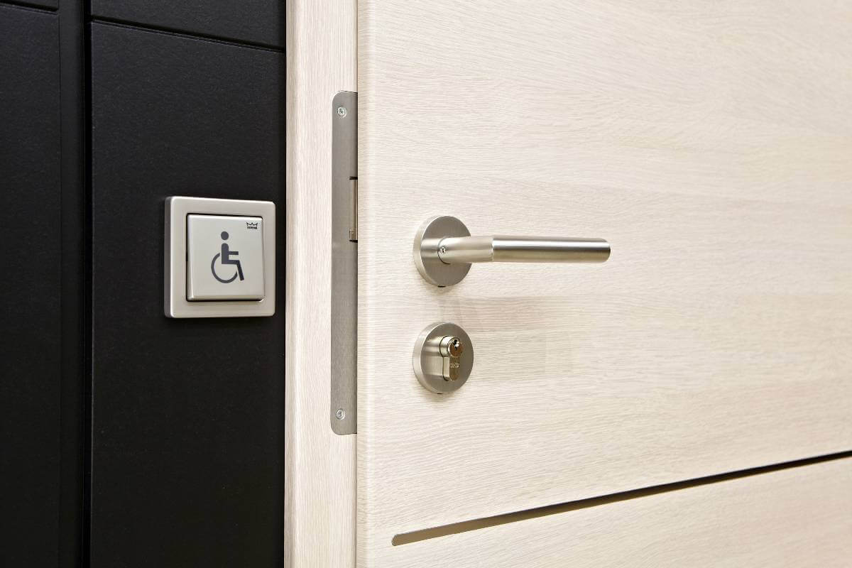 Wesentliche Merkmale einer Tür sind das Öffnen und Schließen. Gerade hier kommen natürlich auf Türen für Menschen mit eingeschränkter Mobilität besondere Herausforderungen zu. Die Mechanismen für die Türöffnung müssen vor allem auch für den Rollstuhlfahrer erreichbar sein. Dabei spielt es keine Rolle, ob es sich um einen klassischen Türdrücker oder um einen Taster einer vollautomatischen Tür handelt. Die empfohlene Höhe für Türdrücker und Taster liegt bei 850 mm. Elektrische Türsysteme bei Drehflügeltüren oder bei Schiebetüren bieten einen höheren Komfort. Diese können beispielsweise über eine Funksteuerung oder einen Bewegungsmelder aktiviert werden. Darüber hinaus empfiehlt sich der Einsatz eines Fingerklemmschutzes oder einer pneumatischen Türbremse. Dadurch wird die Verletzungsgefahr deutlich verringert. PRÜM bietet diese Systeme im gesamten Spektrum seines Produkt-Portfolios an.