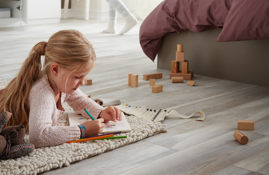 Gerade beim Spielen oder Basteln geht schon mal was daneben - hier kann ein pflegeleichter Boden, der Flecken unempfindlich und robust ist, viel Zeit sparen und die Nerven schonen.