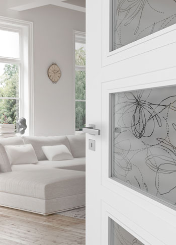 Die Stiltürenserie kann nach Belieben individuell mit verschiedenen Glaseinsätzen im Designverbund perfektioniert werden. PRÜM schafft mit den MODENA-Türen eine anziehende und elegante Modell-Reihe in Weiß.