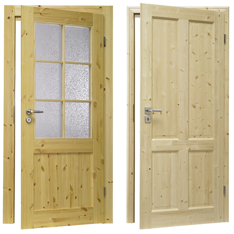 Bild links Country-Style (Modell LS/2F-SP6 Kiefer astig geölt), rechts Bild Country-Style (Modell LH/04 Fichte astig lackiert) (Foto: BAWO)