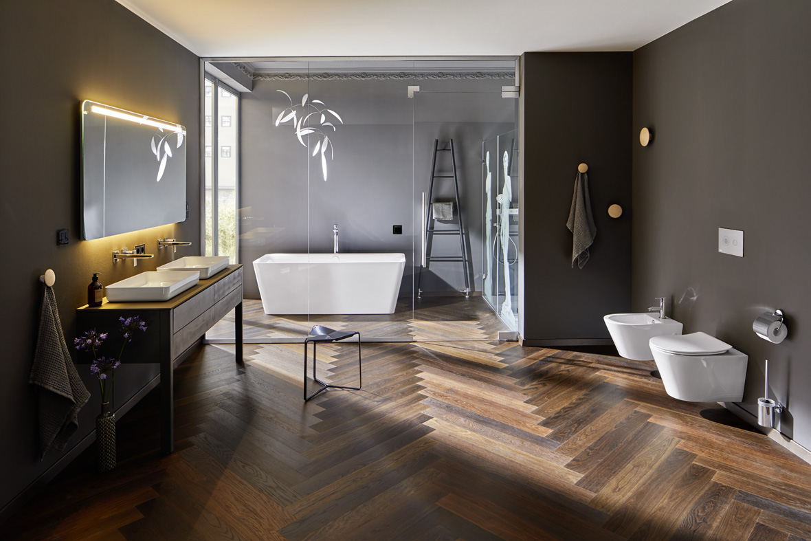 Hochwertiges SPA Parkett von HARO im Bad ist eine reizvolle Option, denn mit einer professionellen Verlegung wird so ein Traumbad zum absoluten Blickfang.
