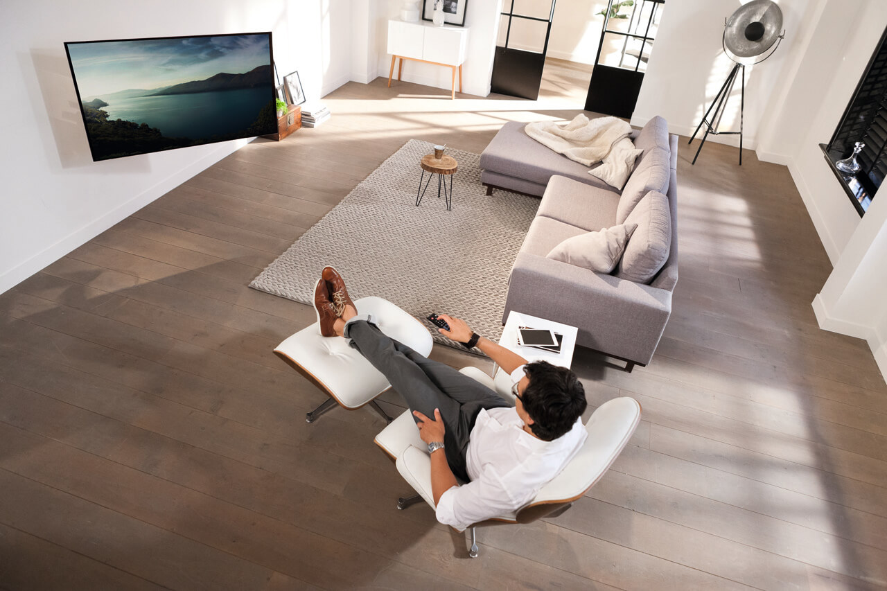 Liebhaber besonderer Fernseherlebnisse profitieren bei der exklusiven Zusammenarbeit: Dank einer Software-Integration in die Loewe Bedienoberfläche (Loewe os) können die schwenkbaren TV-Wandhalterungen direkt vom Loewe Fernseher aus bedient werden. Premium Fernsehen. Aus jedem Blickwinkel. Am IFA Messestand in Halle 24 sind Loewe Fernsehgeräte mit der TV-Wandhalterung NEXT 7355 aus der motorisierten Vogel’s NEXT-Serie ausgestattet.