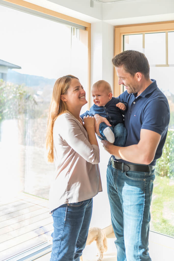 Da kommt Freude auf: Gerade junge Familien, die sich den Traum vom eigenen Haus erfüllen möchten und damit erheblichen finanziellen Belastungen ausgesetzt sind, profitieren bei der Fensterneuheit KF 310 von Spitzenqualität zum Spitzenpreis. (Foto: epr/Internorm)