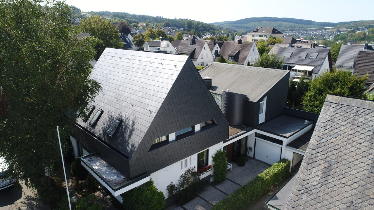 Besonders geeignet ist das Schieferdach-System für moderne und geradlinige Steil- und Pultdächer, die damit selbst ohne besondere Vorkenntnisse in kurzer Zeit eingedeckt werden können. Durch die vorkonfektionierte Komplett-Anlieferung als System-Baukasten fallen an der Baustelle kaum Abfälle an, für die Installation ist keinerlei Spezialwerkzeug notwendig.