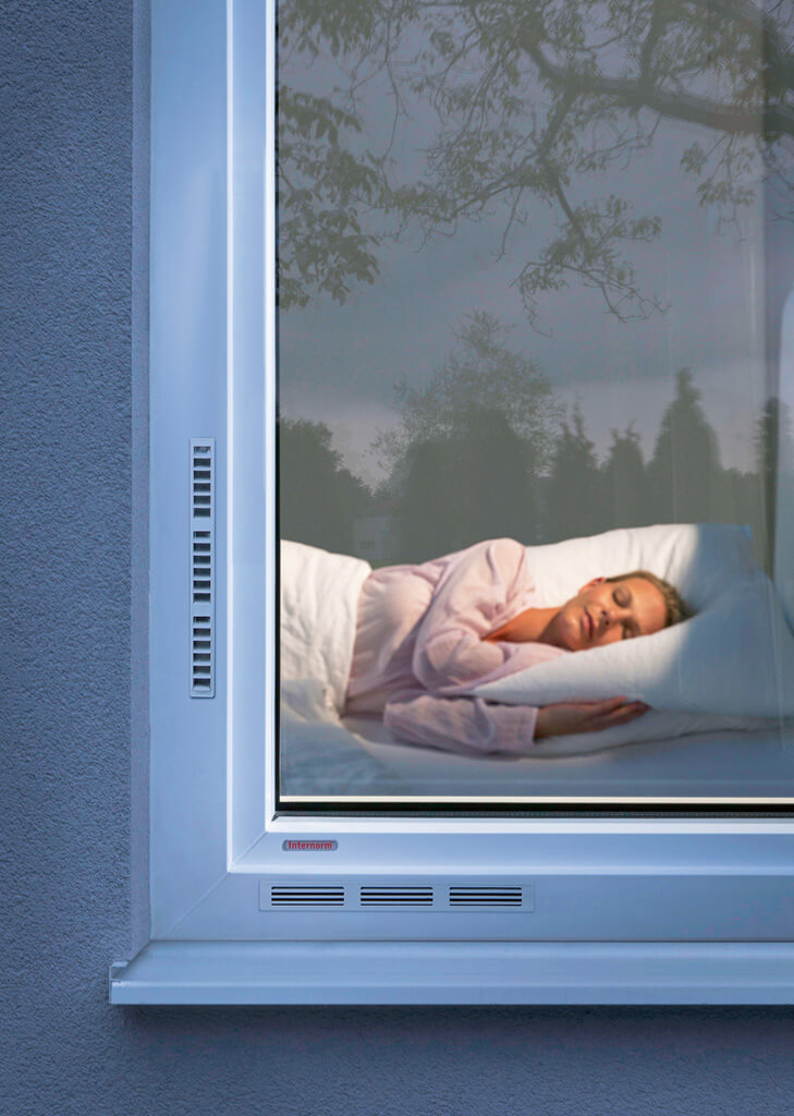 Die vollständig in das Fenster integrierte „I-tec Lüftung“ von Internorm versorgt den Raum bedarfsgerecht mit Frischluft – Lärm, Staub und Pollen bleiben draußen. So ist nachts für erholsamen Schlaf ohne Störfaktoren gesorgt. (Foto: epr/Internorm)